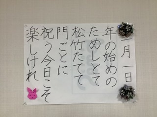 職員が歌詞を書いて壁に貼りました