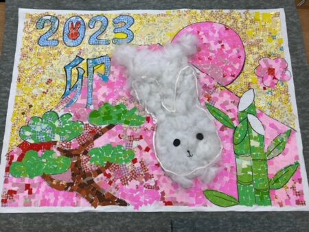 昨年から皆さんで作成した毎年恒例の干支の貼り絵の壁画が出来ました✨