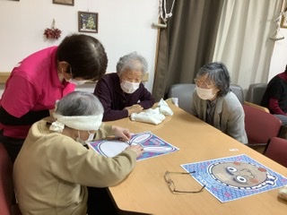 レクリエーションは福笑いをして🎍