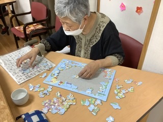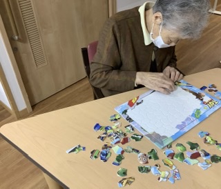 「●●さん上手にできとったなぁ〜」と優しく声を掛けて下さり、居室にこもり気味だった方がリビングに出て来られる時間が増えました。