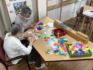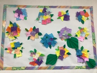 2枚目の写真は、壁面の枠に貼る折り紙を用意していただいています