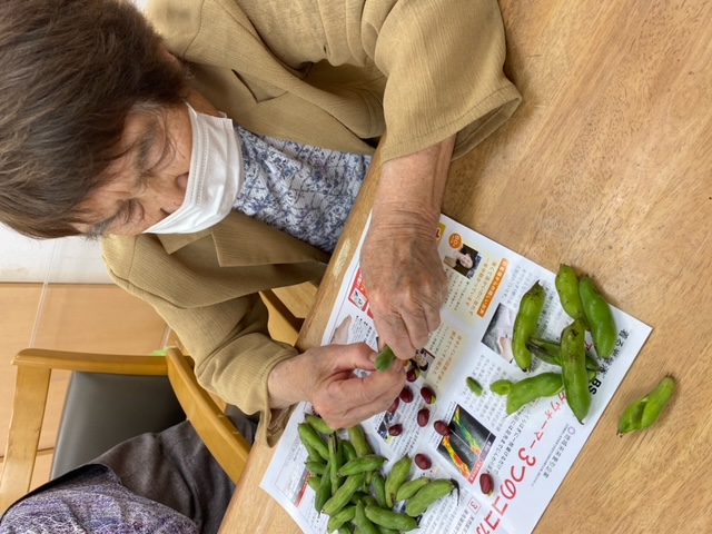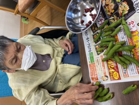 赤そら豆を頂いたので皆さんにむいていただきました🤗