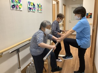 歌に合わせて足を上げる機能訓練を行っていました。