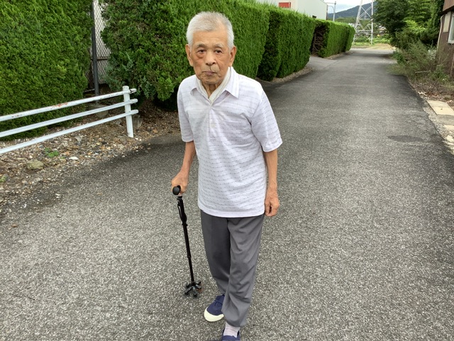 桜東ユニットのI様です。6月からいぶき苑に入所されました。それまでは車椅子で移動されたいたのですが、歩行器でも十分歩行できることが分かり、又、食事もスプーンを使用されていましたが、お箸も使える事が分かり、お箸で食事をとっていただくことになりました。画像は歩行訓練の合間、御自身から進んで手すりを使用し運動をされている様子です。