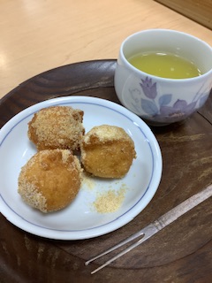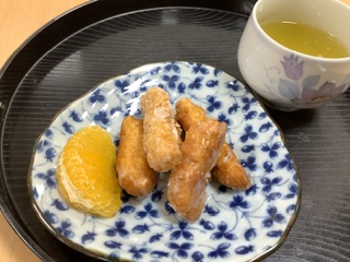 本日の手作りおやつは、「豆腐きなこドーナツ🍩」です😊
