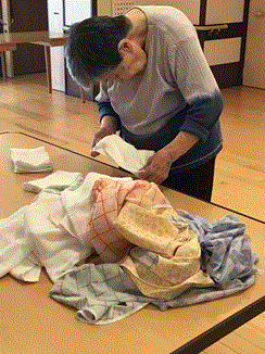 葵西のご利用者です。洗濯物たたみをお願いしたら、快く引き受けてくださいました。とても上手にたたんでいただけます。