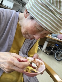 本日のおやつは、「栗饅頭」と「せんべい」でした。