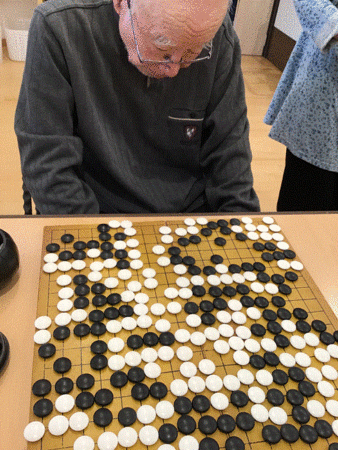 囲碁が大変お好きで、職員と碁を指されているときの様子です。