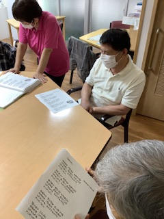 はつらつでは余暇の時間に歌を唄われました。「この歌は懐かしいね。」「皆とやと歌えるね。」と昔を思い出されながら楽しい時間を過ごされました。