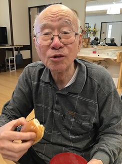 足を動かす運動や大きな棒を音楽に合わせて動かす体操を行っていただけました。思った以上の運動量に皆さんへとへと💦