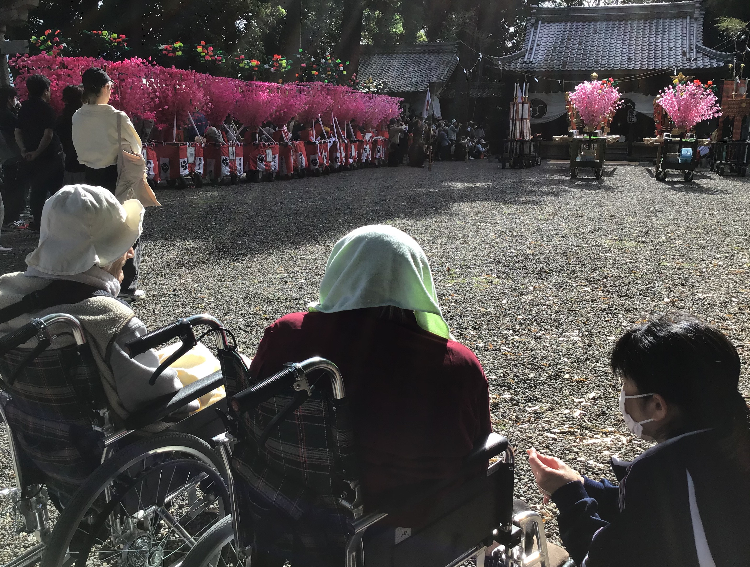宮代まつりを見に御旅神社まで行ってきました。雅楽の演奏と演舞がとても神秘的で、神輿を担ぐ姿も勇ましく、元気を頂きました。境内の砂利道を車椅子で進むのに苦戦しましたが、「今年は諦めていたけど、来れて本当に良かった」と喜んで頂けて、砂利道に奮闘した甲斐がりました。 本館 介護室