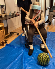 棒を振り上げて、スイカを上手に割る事ができました♪