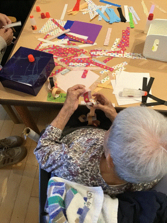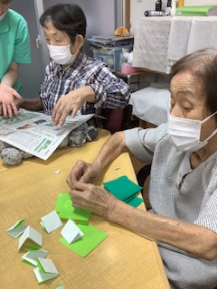 別館運動会に向けて、折り紙で鎖を