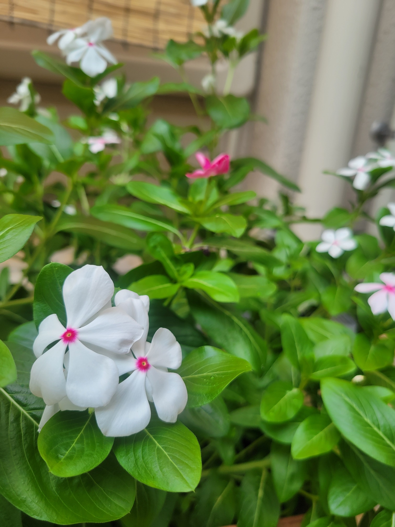 日日草の可憐なピンクと白、