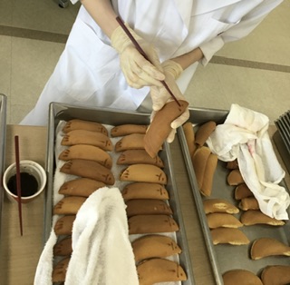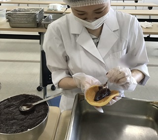 そして、生地に餡子を挟んでいきます!
