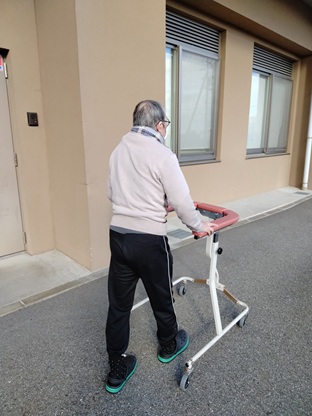 歩行器歩行での移動でしたが、傾斜や段差もなんのその!