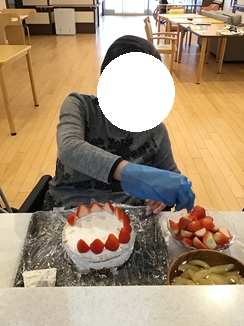 クリスマスケーキを作っていただき、その後皆様で召し上がっていただきました(*^^*)