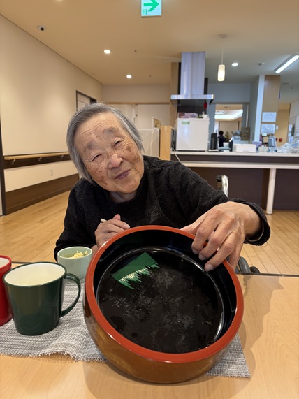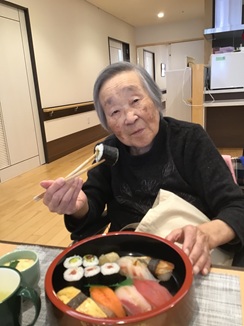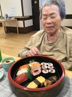 届いたお寿司も皆様「ごちそうやな」「美味しいね」と召し上がられ、食べられた容器を「からっぽー」と笑顔で職員に見せてくださる方もみえました(*^^*)