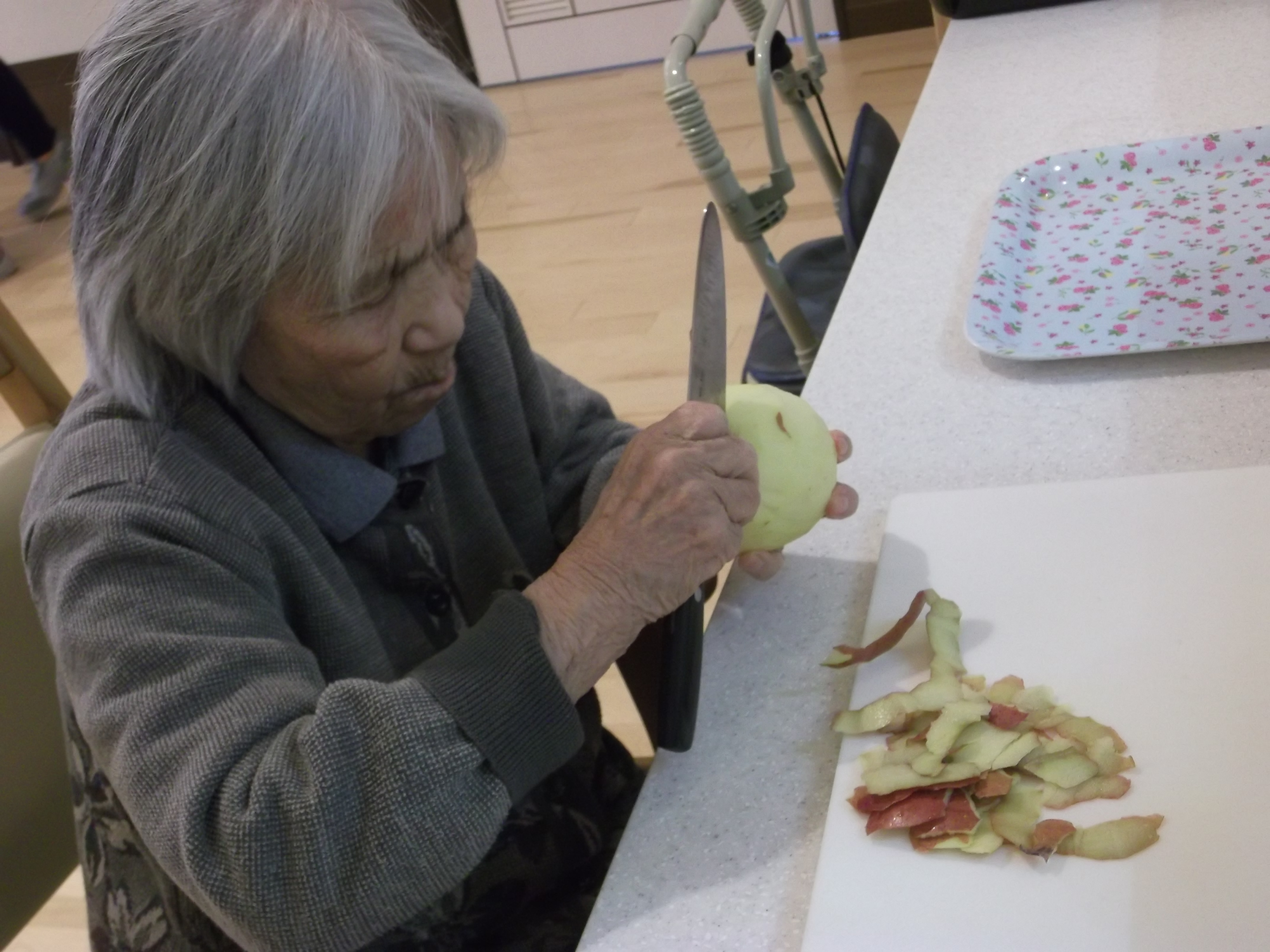 リンゴの皮をみんなで剥き、その剥いた皮を紅茶に入れてアップルティーにしました。