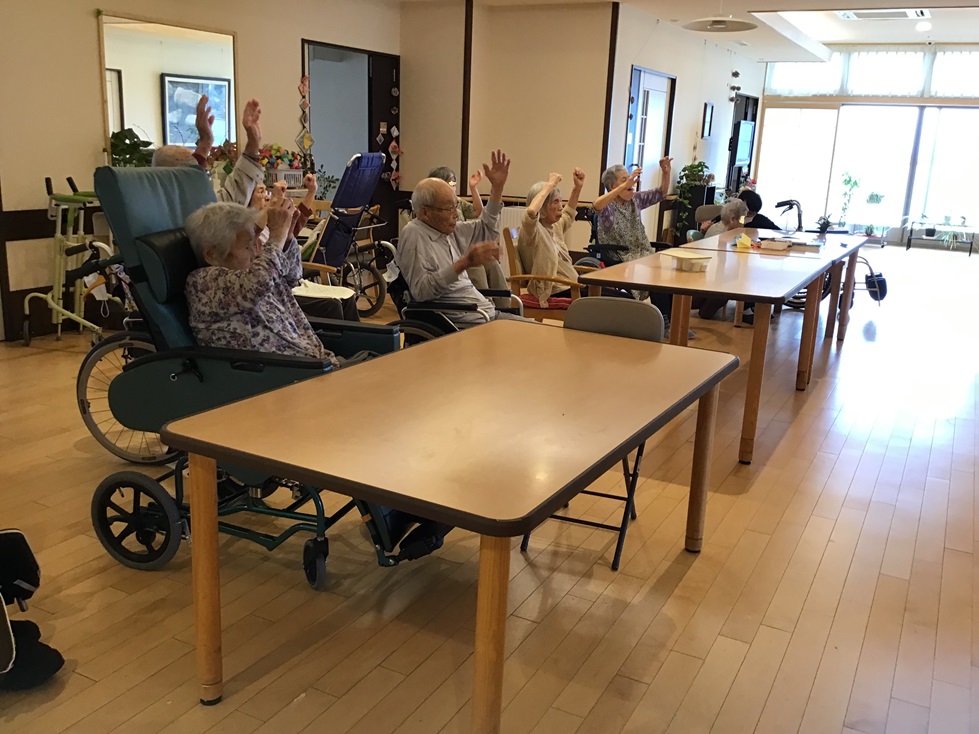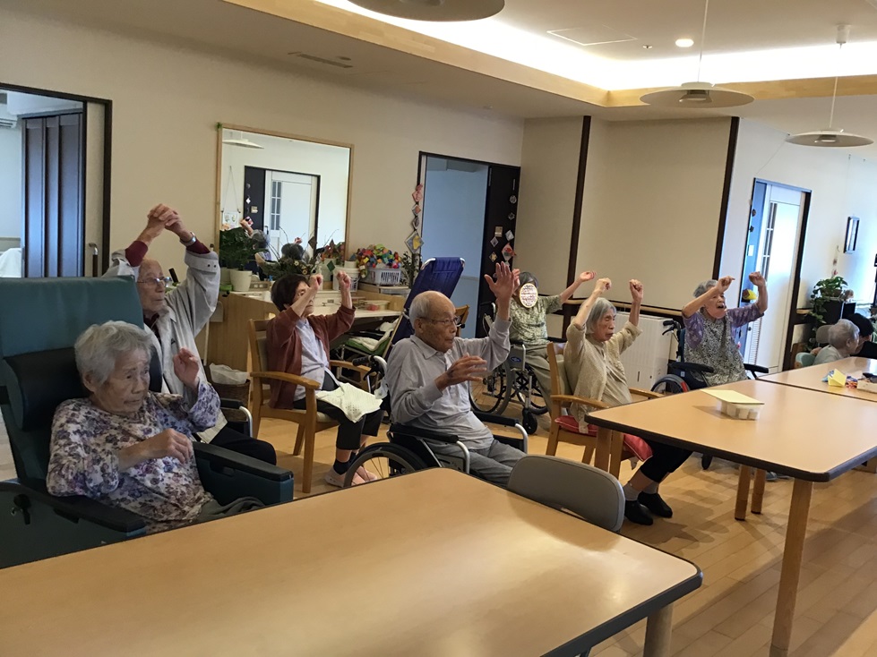 桜ユニットではYouTubeをみながらの体操が日課となっています。