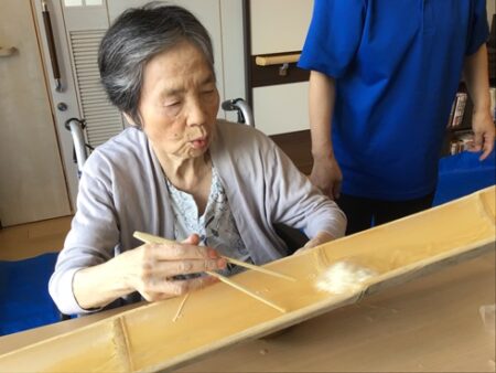 ユニットで竹の流しそうめんを開催(*’▽’)