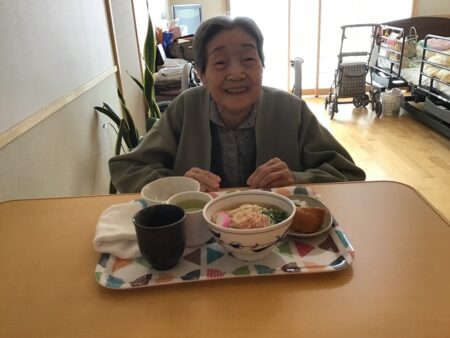ご入居者様より「嬉しい、これが食べたかったの。美味しそうやね」と喜んでいただきました。皆様、汁まで完食していただき「出汁が美味しかったよ」とおほめの言葉をいただきました。準備は大変でしたが皆様の笑顔がみられ嬉しかったです。