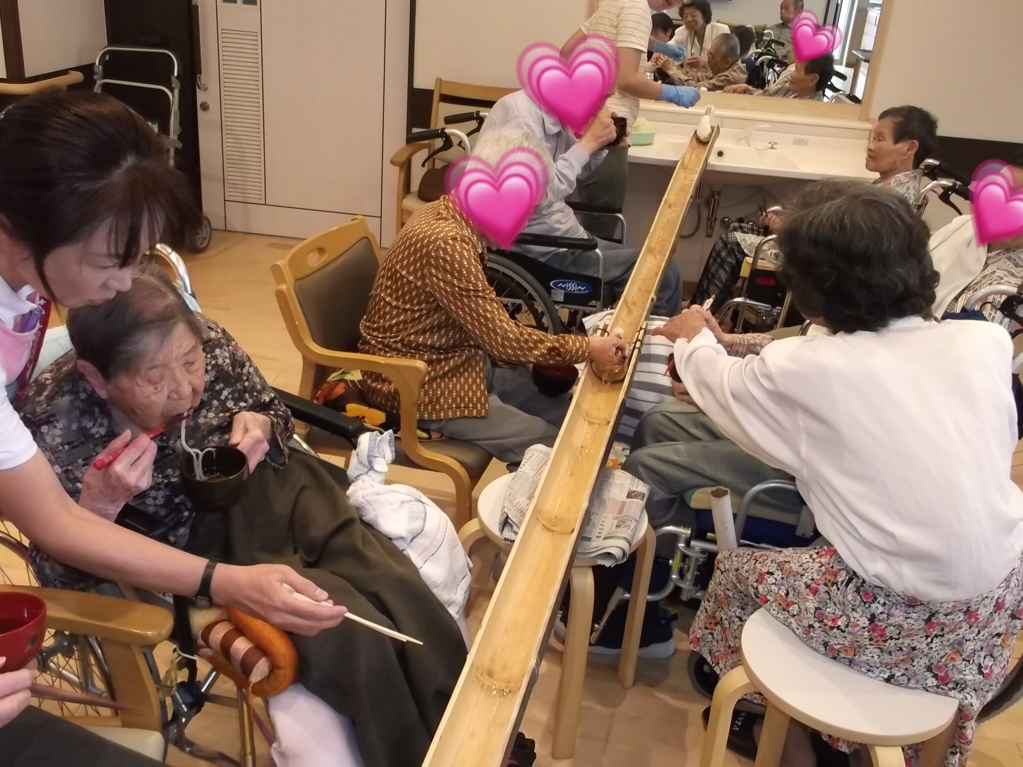 普段スプーンで食事している方も箸を上手に使われて皆様笑顔で素麺を食べておられました。