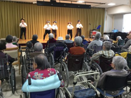 4月5日(木)、しらゆり会様に来苑いただき、歌や踊り、ハーモニカ演奏等を披露していただきました。