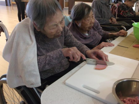 利用者様に野菜の皮むきや包丁で切る作業を手伝って頂きました。